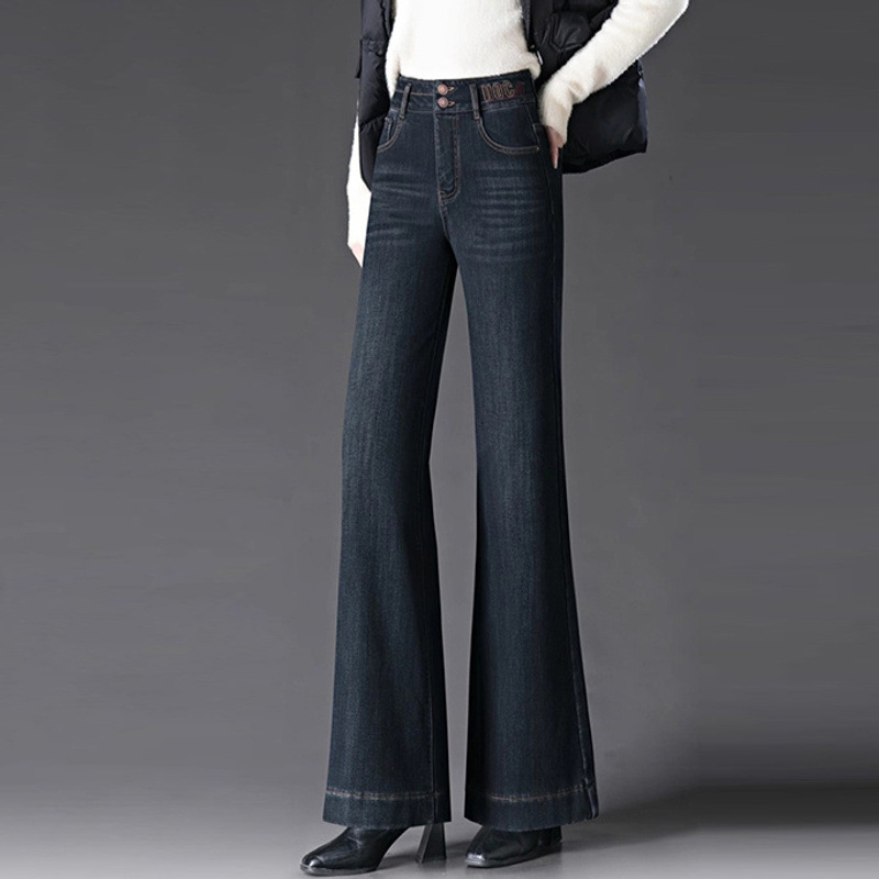 ハイウエストデザインが特徴的なこちらの幅広デニムは、脚長効果を演出しながら快適な着心地を実現します。